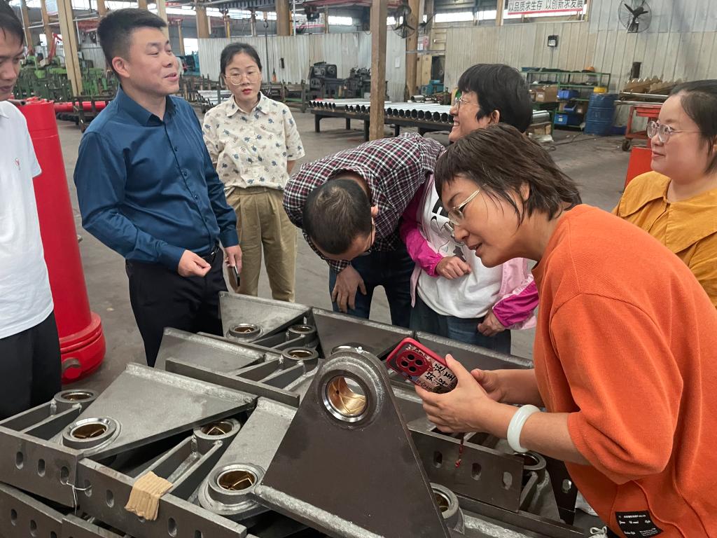 在湖 北万邦液压装备有限公司,beat365官网教师听取了企业负责人张建亮关于企业生产经营、科技研发、技术难题等情况介绍,参观了生产车间。对于企业提出的产品轻量化、装备自动化、数字化赋能等技术需求,教师团队给予了现场指导,并与公司技术人员进行了深入交流和技术对接,表示将根据企业的需求后续跟进服务,助力企业创新发展和技术进步。交流活动结束时,企业负责人深表满意和感谢,并就后续校企合作达成意向,接下来将邀请学院教师对企业员工开展培训和技术指导。