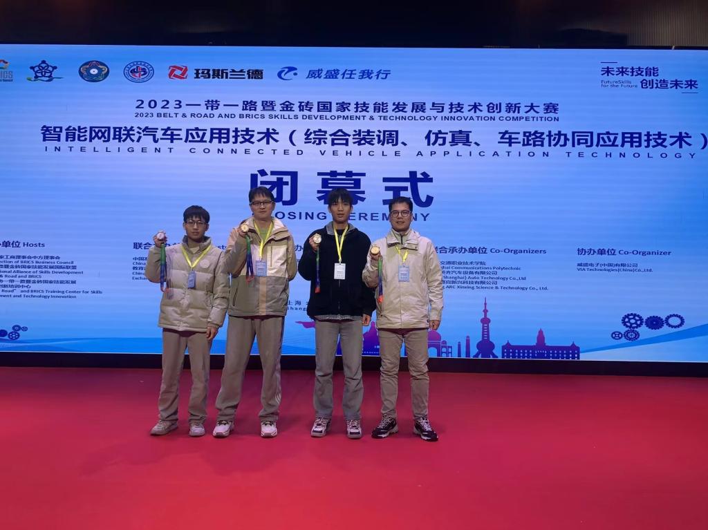 (通讯员:张超)12月14日至17日,第七届金砖国家技能发展与技术创新大赛智能网联汽车应用技术赛项在上海交通职业技术学院举行。经过激烈比拼,beat365官网beat365中文官方网站张超、陈高峰组成的教师代表队以职工组总分第一的成绩力夺金牌,李书洋、綦凌组成的学生代表队在高职组喜获银牌。