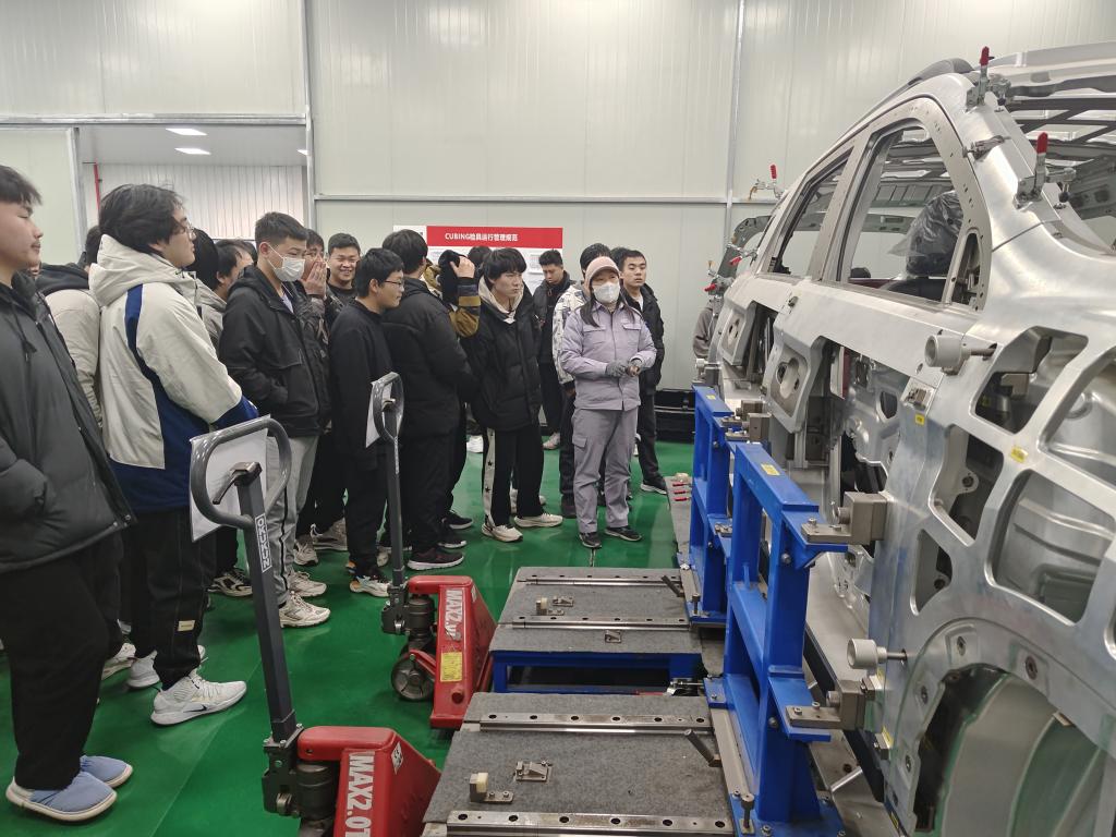 该企业3名技术专家被beat365中文官方网站特聘为《汽车产品质量检验》课程兼职教师。同学们来到企业后,分别在汽车白车身检验工作区域、汽车全车电器测试车间、汽车全车身零部件测试车间进行参观学习,了解企业的具体情况。每到一处,企业兼职教师就各自工作流程、工量具使用和检验技术需求进行详细讲解,并进行实地操作演示。其中关于汽车质量控制技术人员的责任使命的介绍,让同学们现场深刻体验到坚持工匠精神的重要意义。在交流互动环节,同学们就汽车制造专业方面的疑问虚心请教,企业教师耐心解答,同学们进一步加深了对汽车制造行业现状的了解,明确了学习的方向,拓展了专业视野。