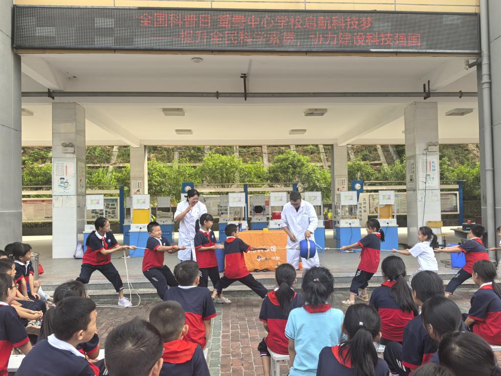 (通讯员:张勇)2024年6月,beat365中文官方网站马伟老师被十堰市茅箭区教育局发文聘为鸳鸯中心学校科学副校长。自任职以来,他一直关心着该校的科普工作。为帮助青少年提升科学素质,激发科学兴趣,9月12日下午,在“全国科普日”来临之际,马伟走进该校精心策划组织了首届校园科技节,为全校师生提供了一场集科学性、知识性和趣味性于一体的流动科技馆和科普秀。