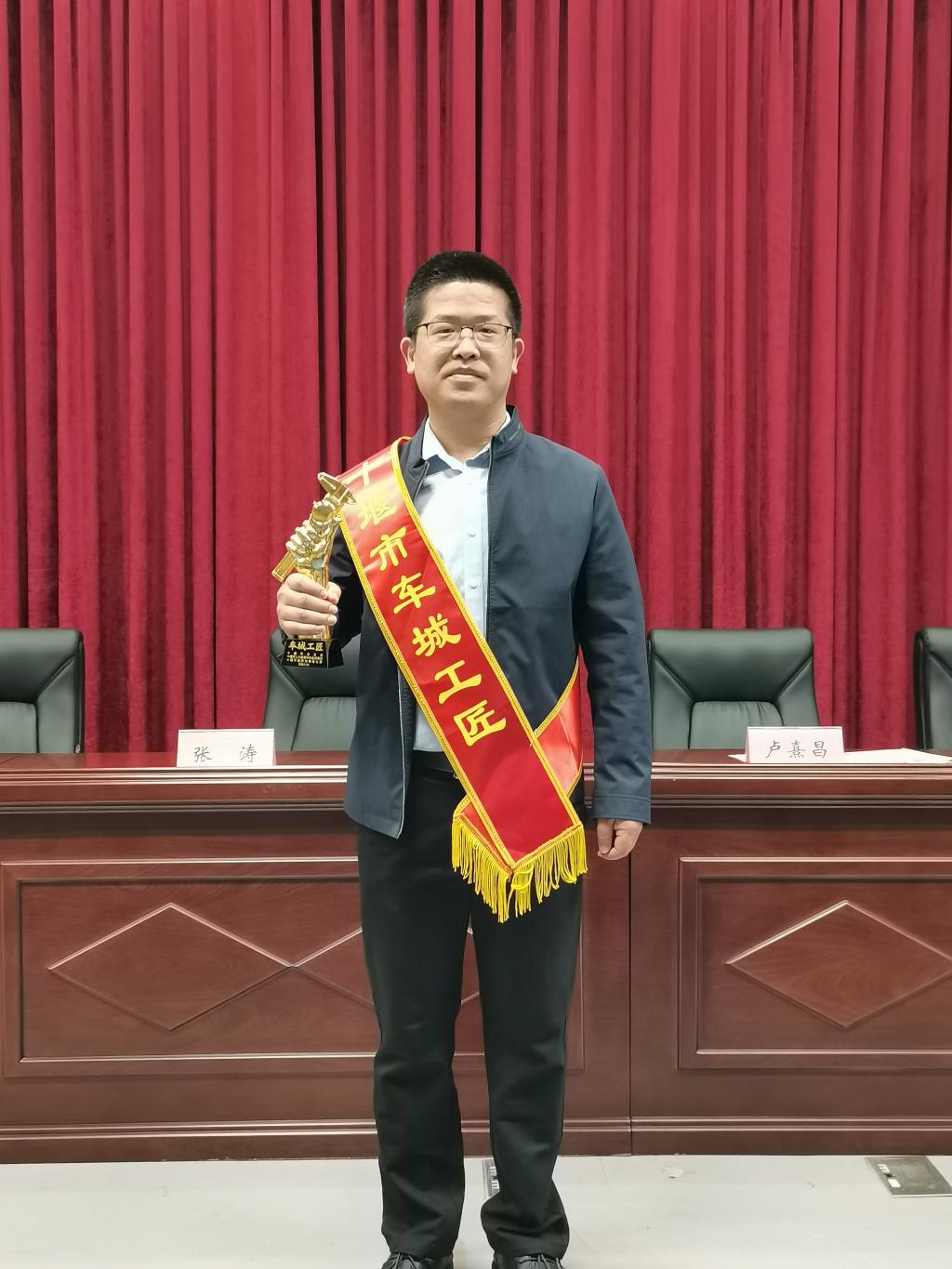 在本次大会上,beat365官网beat365中文官方网站优秀教师马伟荣获十堰市第六届“车城工匠”(五一劳动奖)称号,并上台接受颁奖。