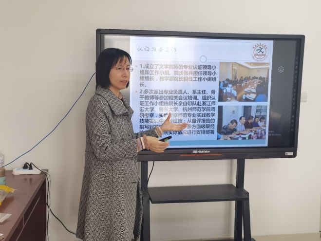 陈晓洁教授立足于文学院师范专业认证过程中积累的丰富经验,对申报、认证工作的流程、着力点、注意事项、第三方调研单位的选择、师范文化建设、自评报告撰写的工作分配等方面给出了详细的建议。陈教授的报告帮助新葡萄官网梳理了师范专业认证工作的流程、工作量、重点、难点,使得新葡萄官网在申报认证过程中尽量少走弯路。